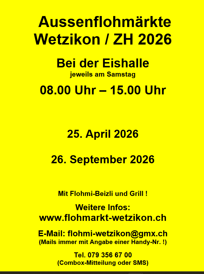 Bitte melden Sie Ihre Anzeigen resp. Termine für Veranstaltungen via E-Mail: